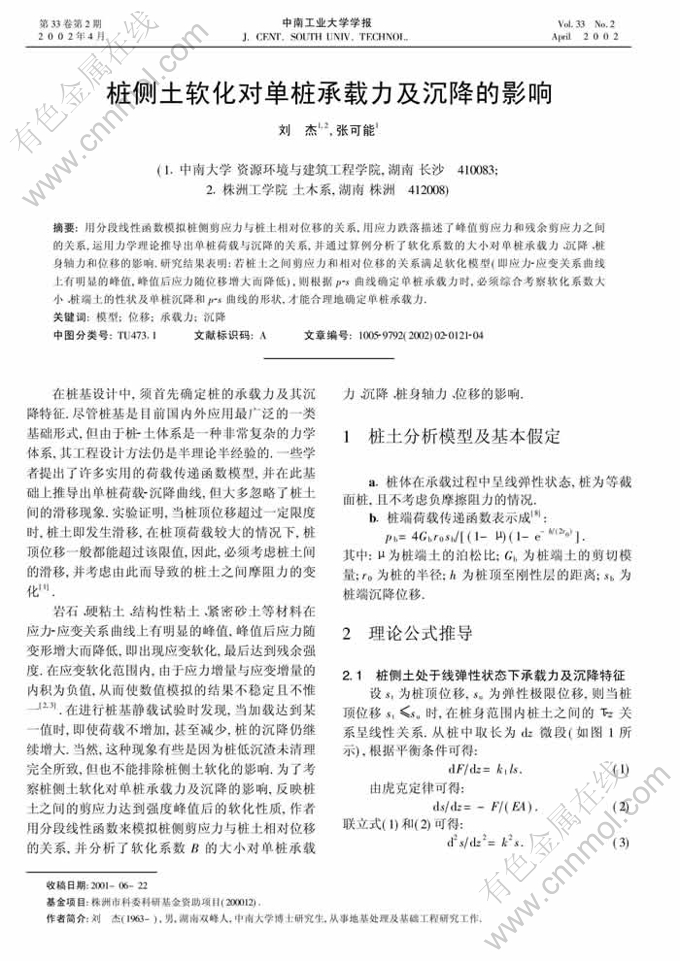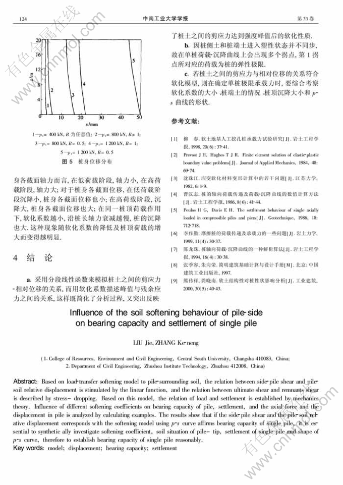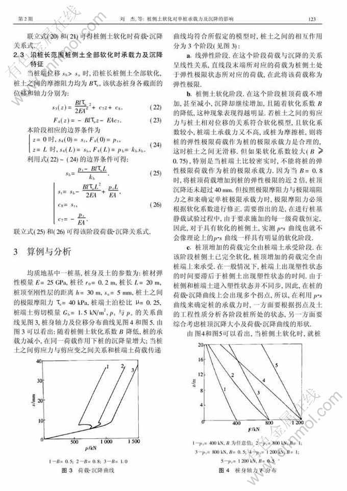 桩侧土软化对单桩承载力及沉降的影响