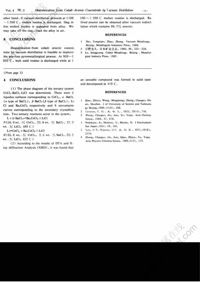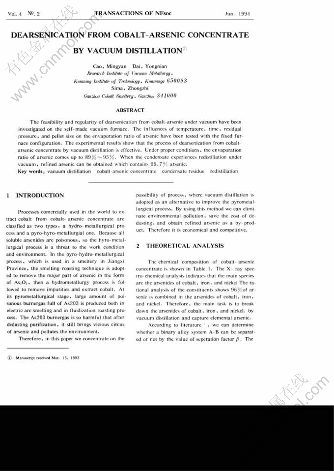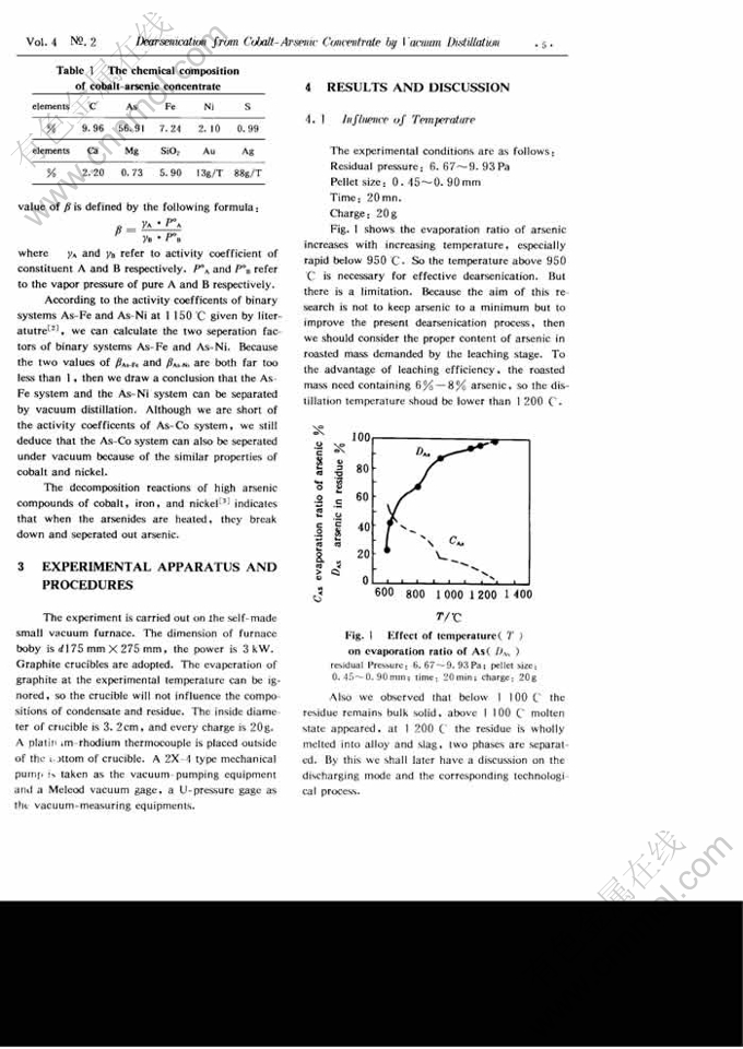 Key words:vacuum distillation; cobalt-arsenic concentratce; condensate residue; redistillation
