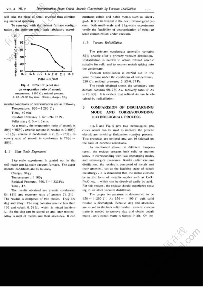 DEARSENICATION FROM COBALT-ARSENIC CONCENTRATE BY VACUUM DISTILLATION
