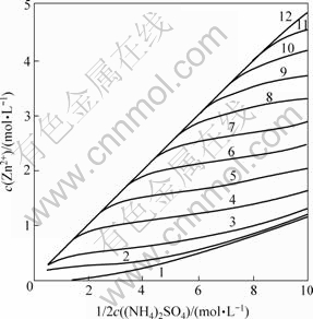 常温(25 ℃)下,硫酸铵浓度对锌平衡浓度的影响如图1[12]所示。