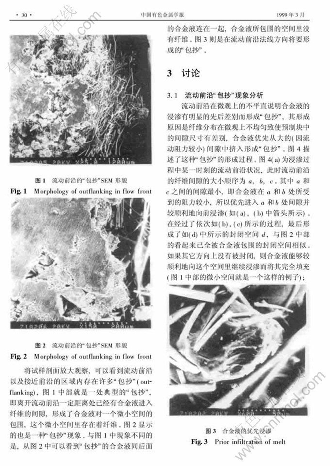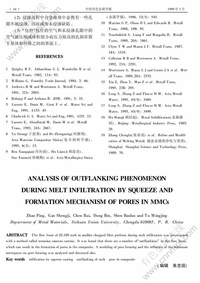 Key words:infiltration by squeeze casting, outflanking of melt, pore in composite