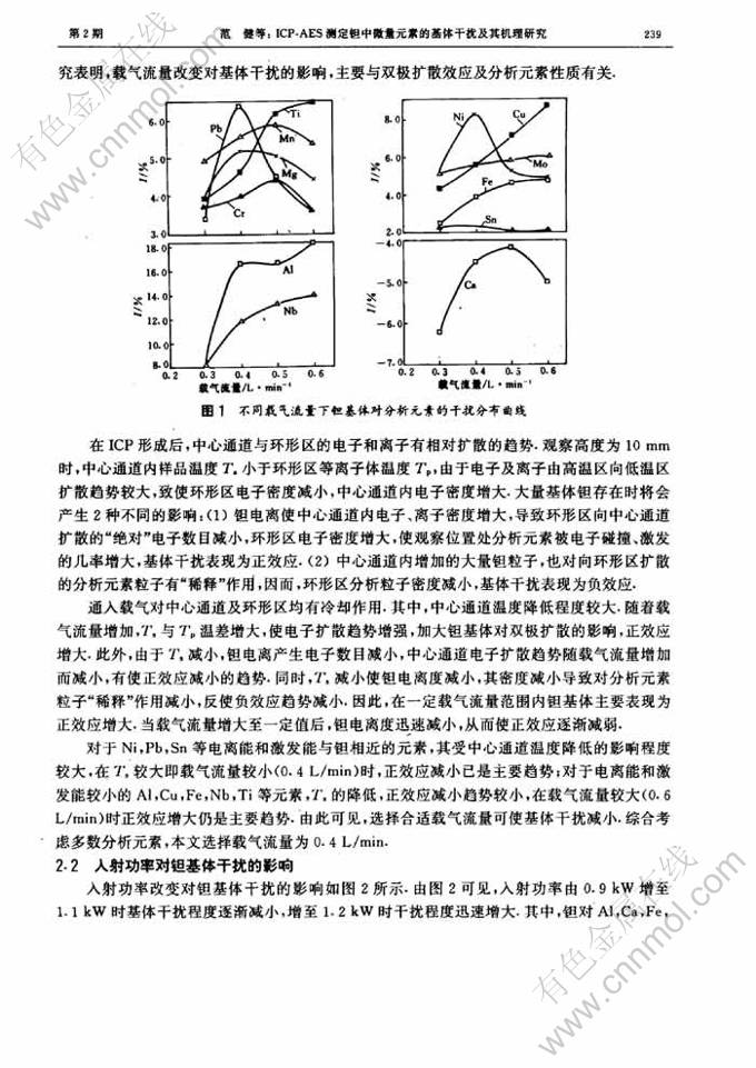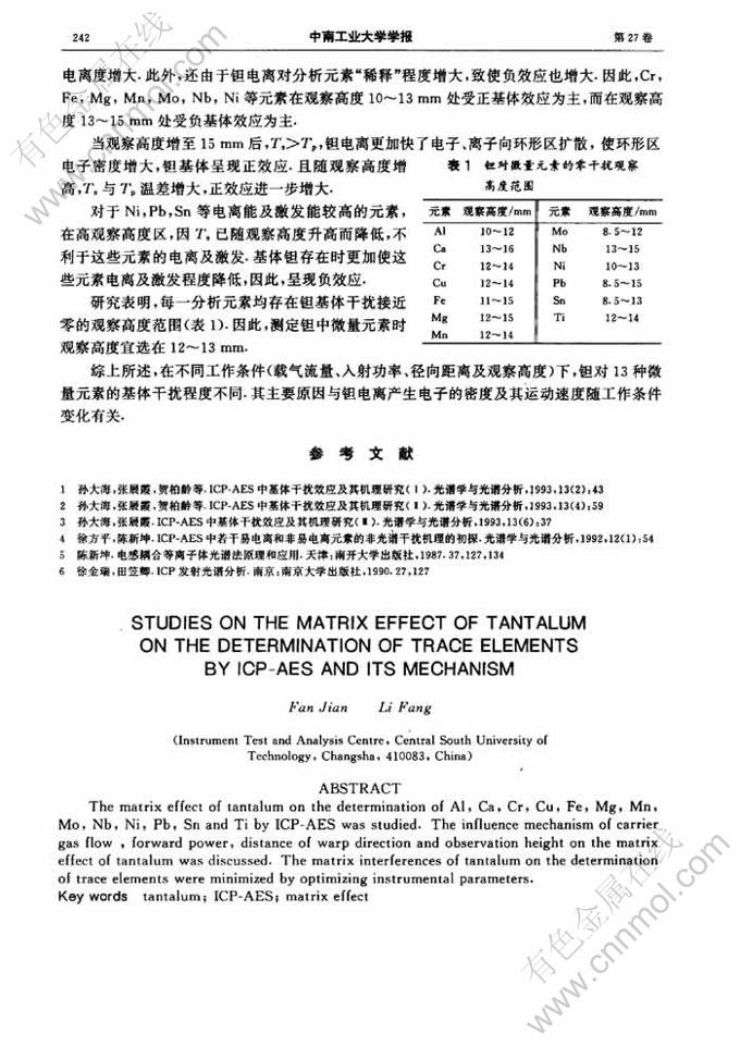 ICP-AES测定钽中微量元素的基体干扰及其机理研究