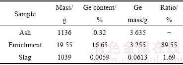 Table 1 Composition of ash containing germanium (mass fraction, %)