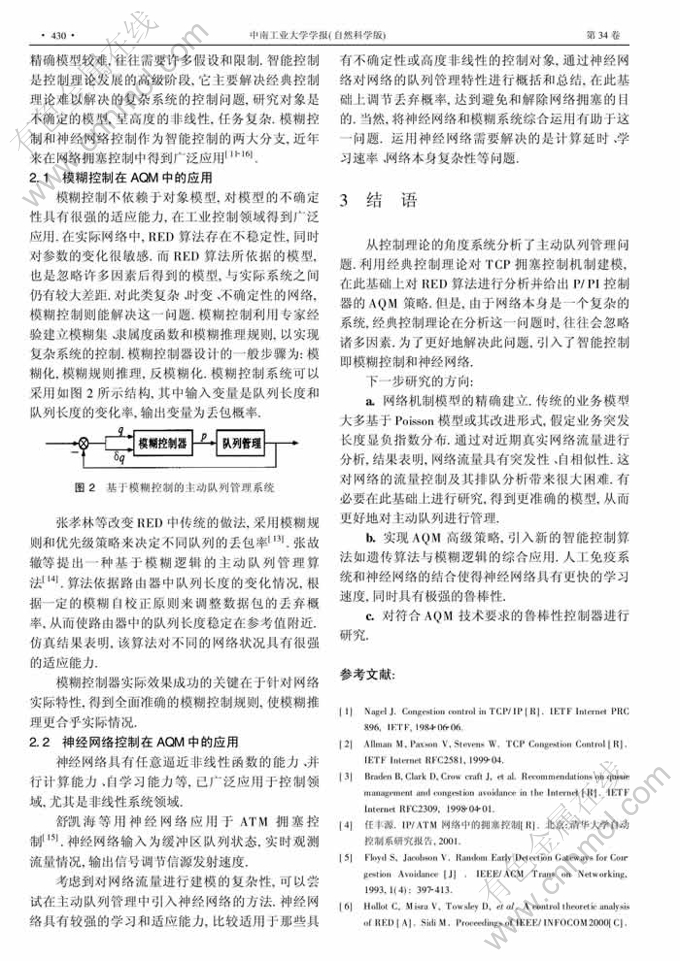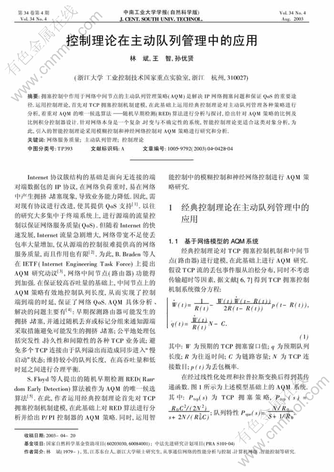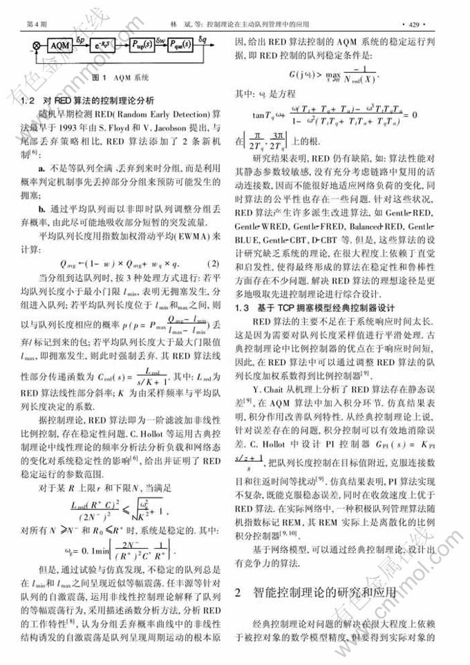 关键词:网络服务质量;主动队列管理;控制理论