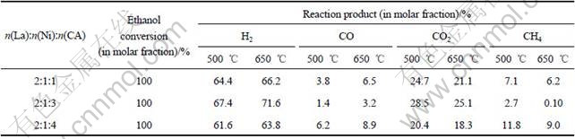 Table 4 C2H5OH reforming using La2NiO4 catalysts prepared with different n(La)?n(Ni)?n(CA)