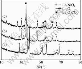 Fig.3 XRD patterns of La2NiO4 prepared with different n(La)?n(Ni)?n(CA): (a) 2?1?3; (b) 2?1?1; (c) 2?1?4
