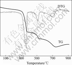 The TG/DTG curves for the La2NiO4 catalyst after ethanol steam reforming reaction at 500 ℃ for 80 h are shown in Fig.6. The DTG curve of the used catalyst distinctly indicated a mass loss due to the removal of carbon. Three DTG features were observed at 363, 513 and 700 ℃. This indicated that at least three kinds of carbon depositions were formed on the La2NiO4. One of the carbon depositions was likely attributed to La2O2CO3,