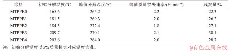 2) talc的加入有效提高了涂层的热稳定性和残炭量,其中,MTPPB3残炭量最高为30.1%。