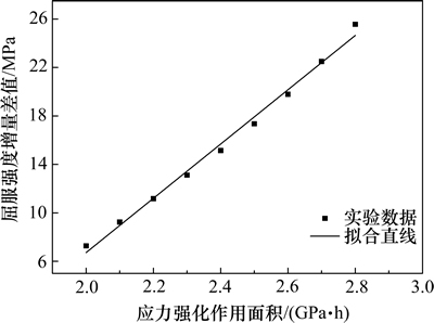 图7 蠕变时效屈服强度增量与应力强化作用面积拟合曲线