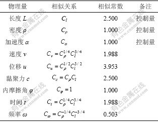 表1 模型主要相似常数