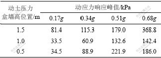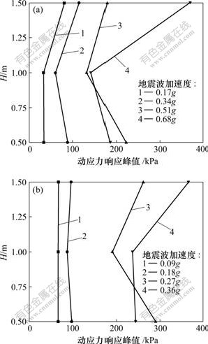 图4 沿墙高方向动应力响应峰值