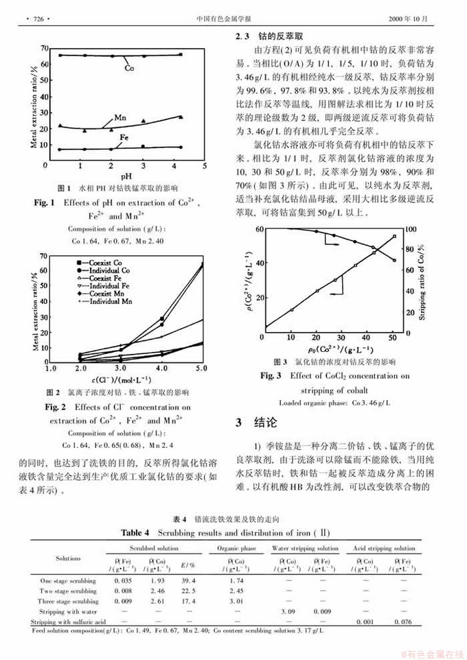 关键词:季铵氯化物; 萃取分离;钴(Ⅱ); 铁(Ⅱ); 锰(Ⅱ)