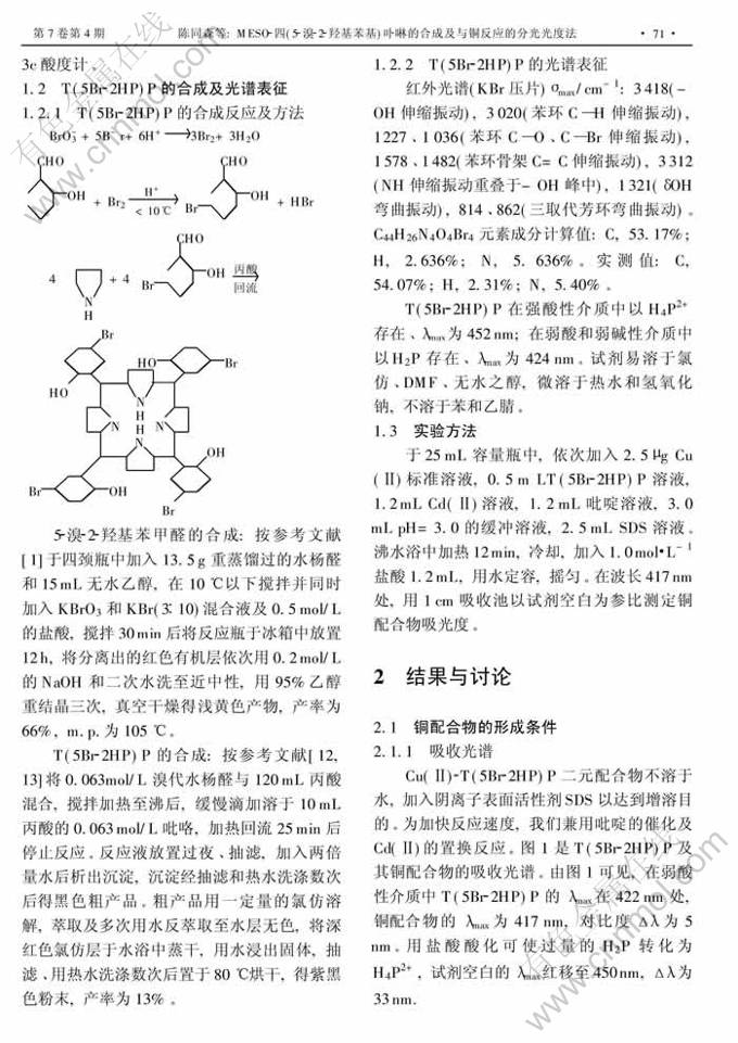 MESO-四(5-溴-2-羟基苯基)卟啉的合成及与铜反应的分光光度法