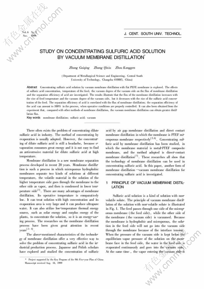STUDY ON CONCENTRATING SULFURIC ACID SOLUTION BY VACUUM MEMBRANE DISTILLATION