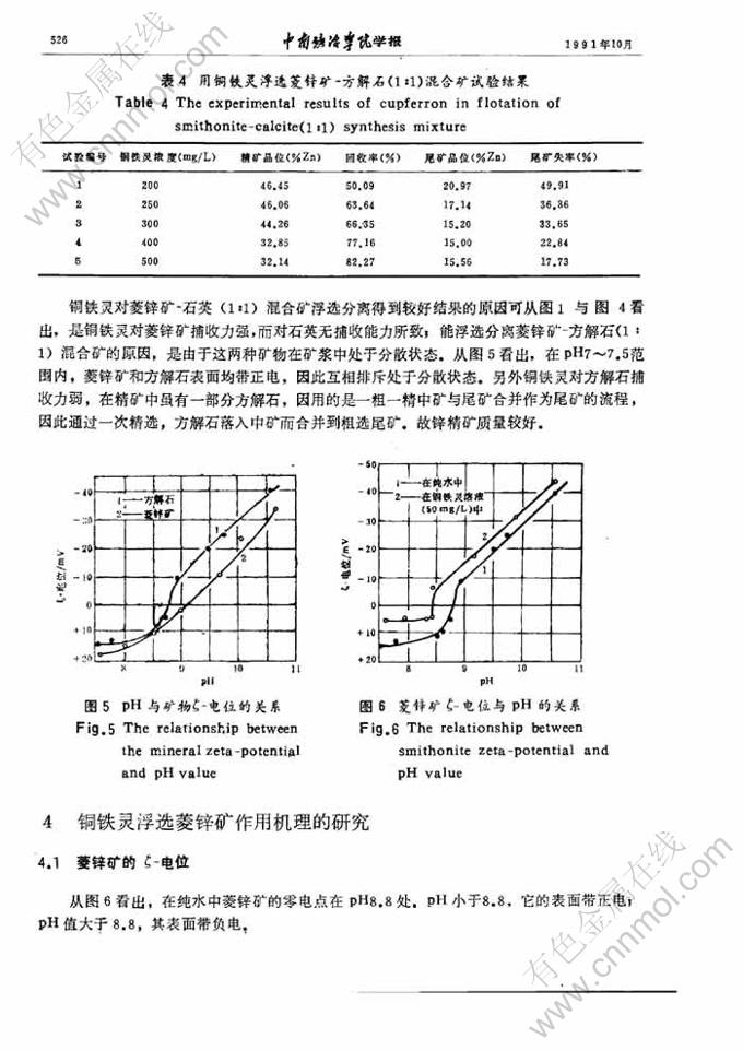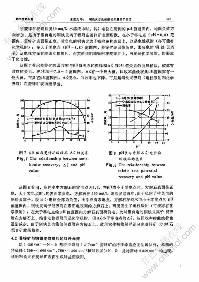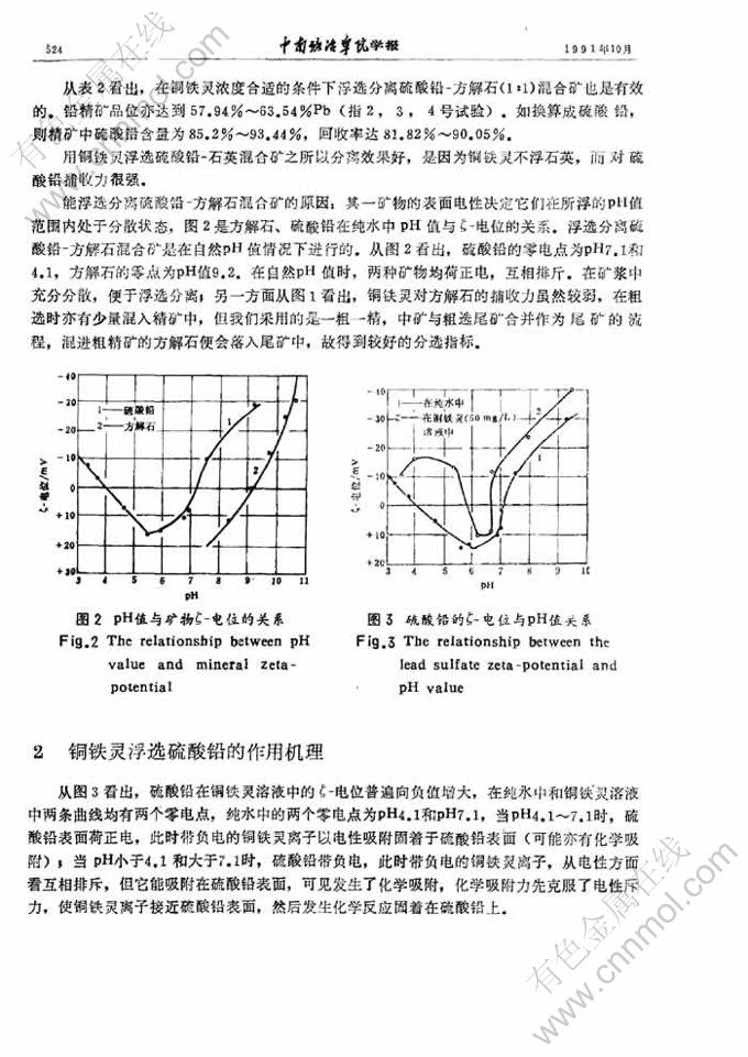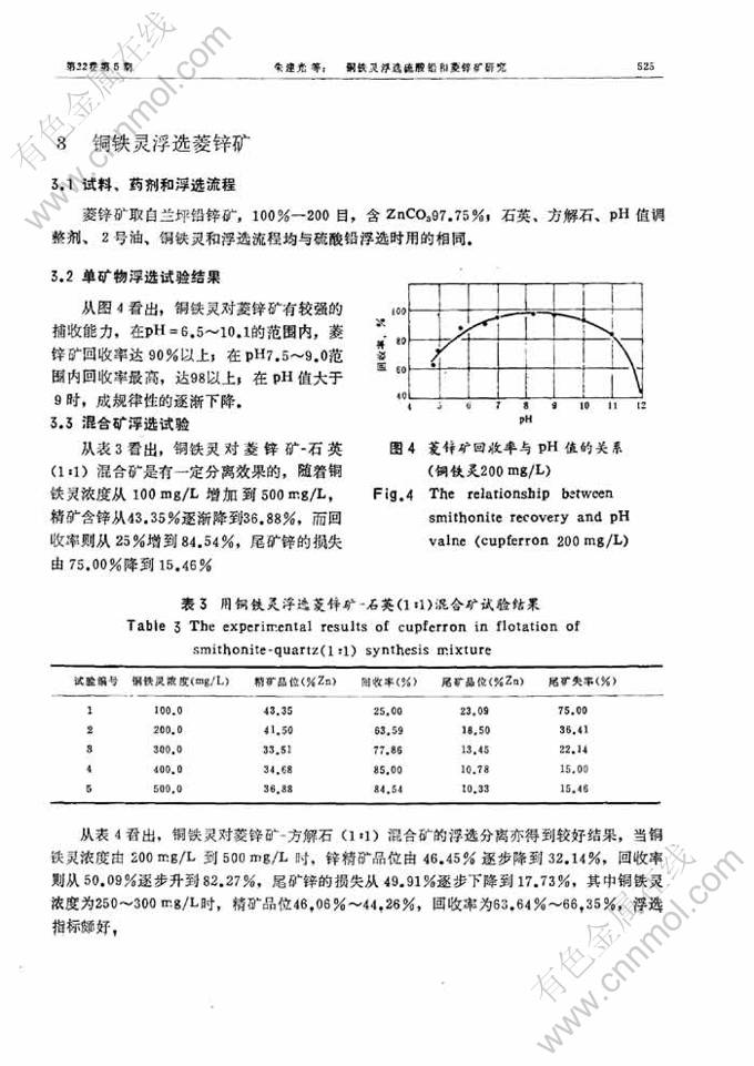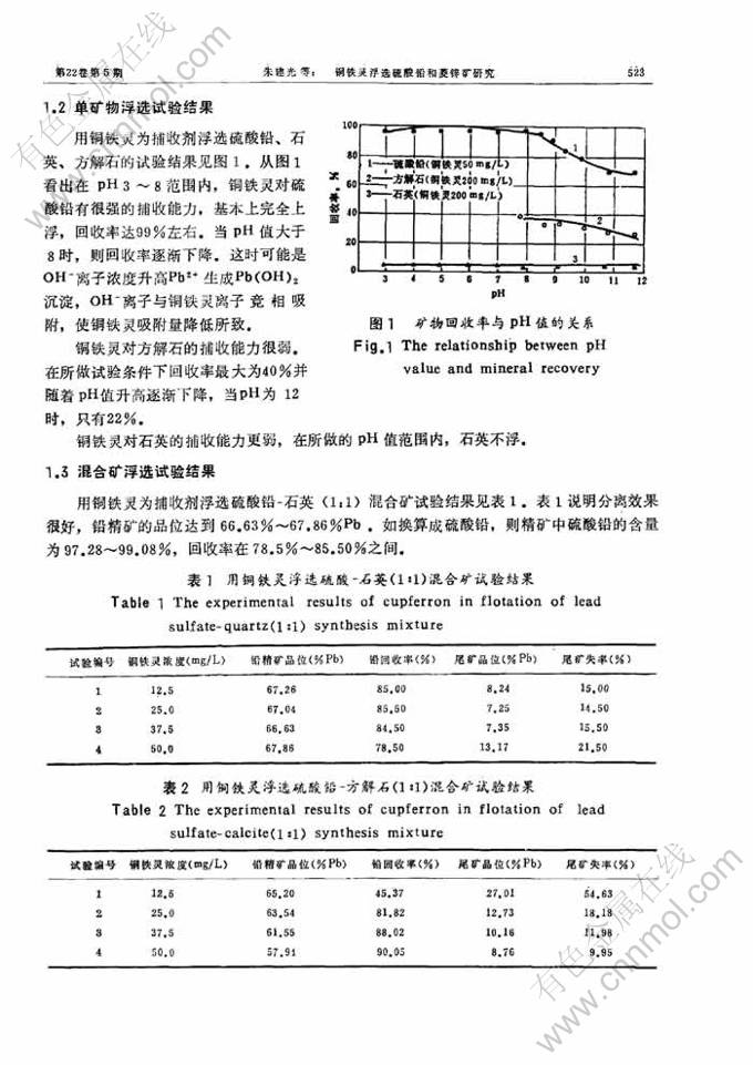关键词:铜铁灵; 铜铁灵浮选硫酸铅; 铜铁灵浮选菱锌矿