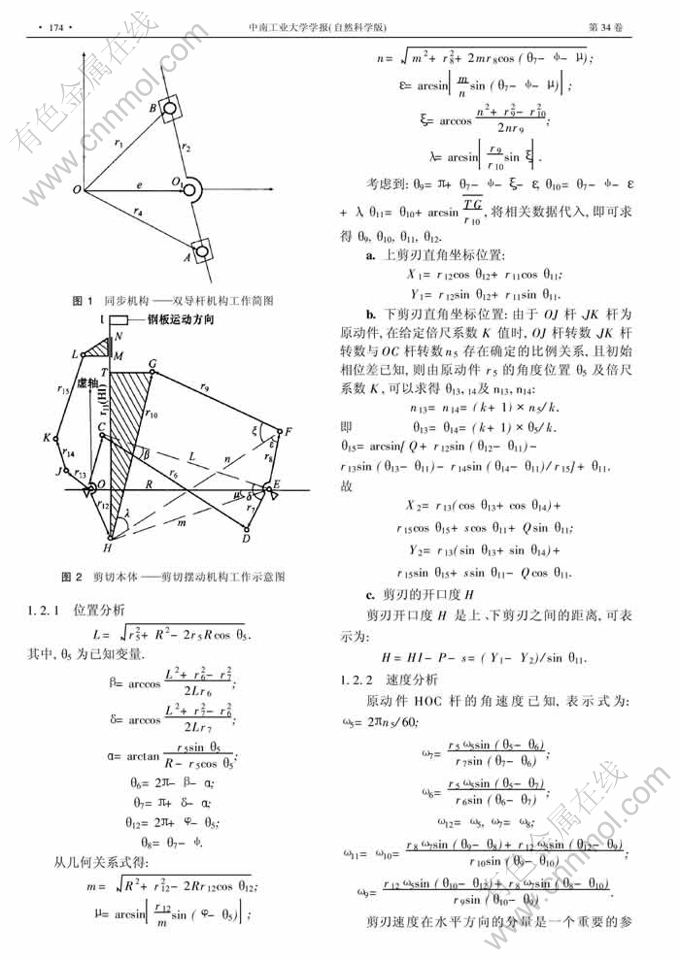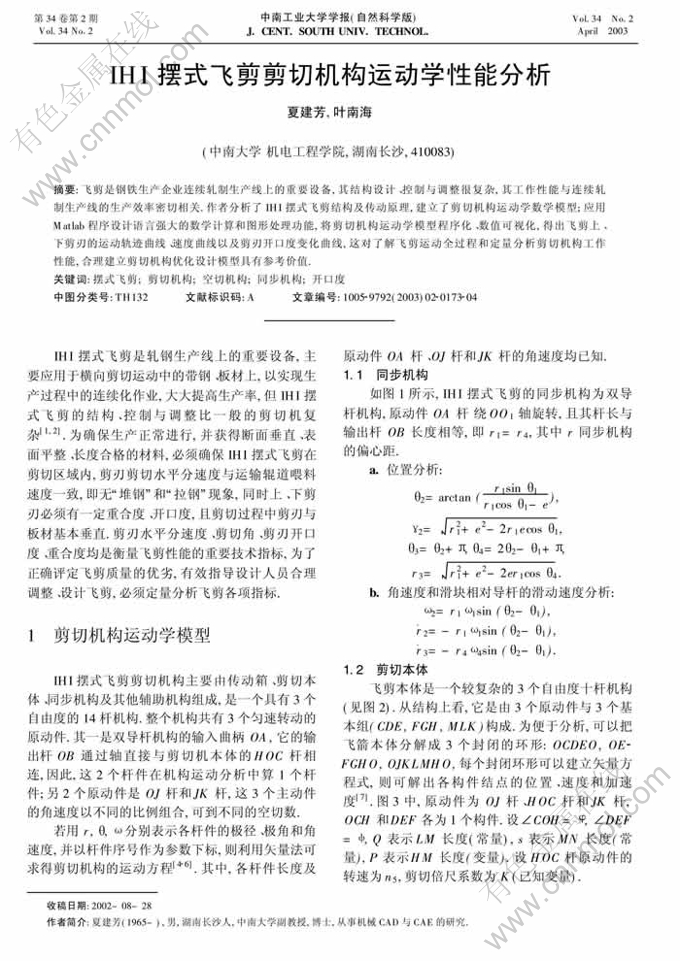 IHI摆式飞剪剪切机构运动学性能分析
