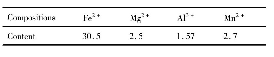 表2 钛白废酸主要成分浓度 Table 2Chemical compositions of titanium dioxide waste acid ( g·L- 1) 下载原图