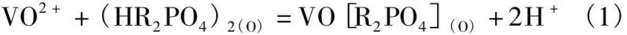 式中HR2PO4为P204,R = C8H17,右下角( O) 表示 ( 有机相)[17]。
