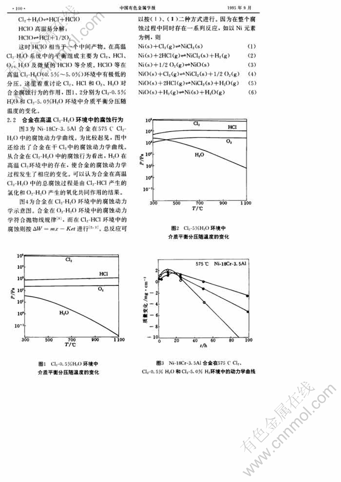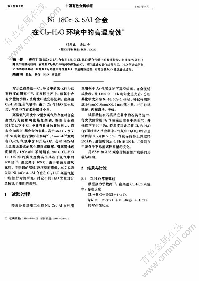 Ni-18Cr-3. 5Al合金在Cl2-H2O环境中的高温腐蚀