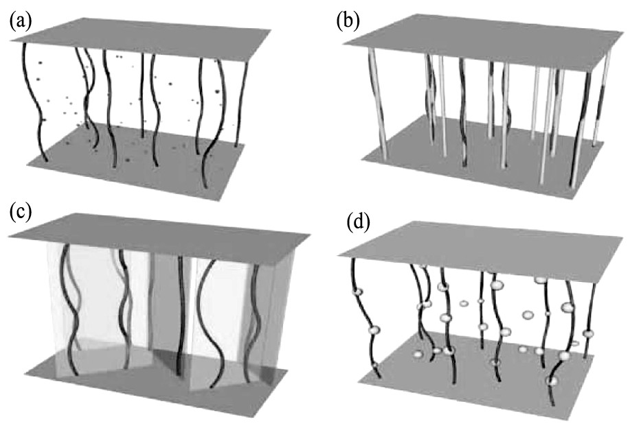 图1 不同类型的钉扎中心的示意图Fig.1 Sketch of dimensionality of several artificial-centers (a) 0D-APC; (b) 1D-APC; (c) 2D-APC; (d) 3D-APC