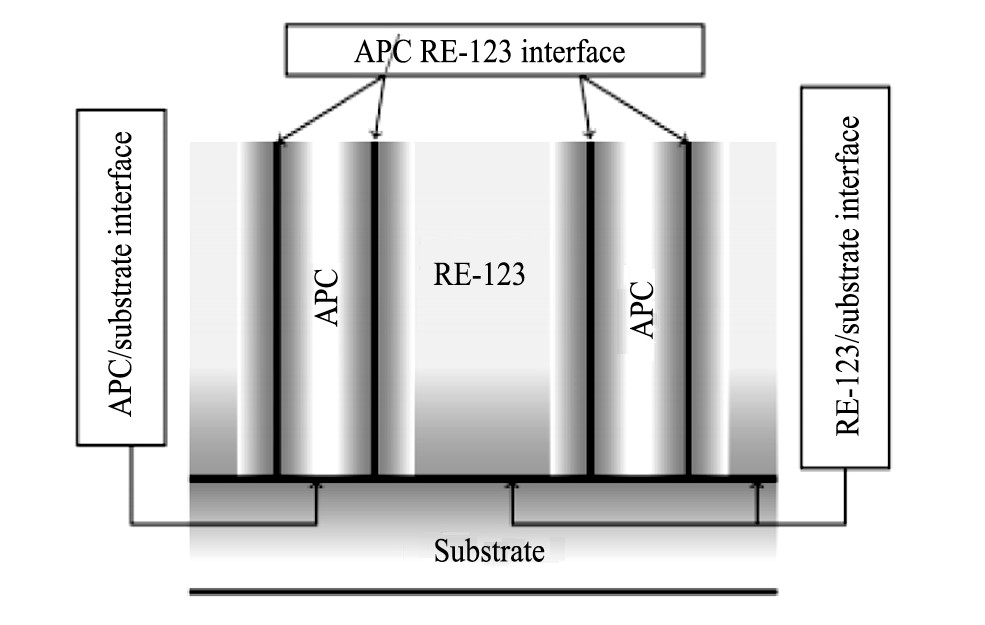 图2 纳米复合薄膜中3种不同的界面Fig.2Three strained interfaces of 1D-APC/RE-123 matrix, APC/substrate and RE-123/substrate[9]