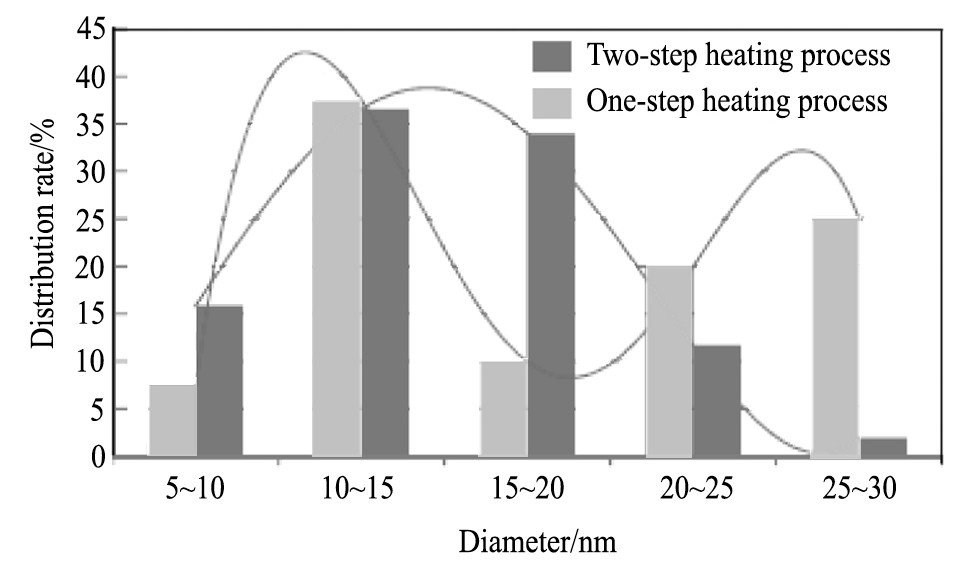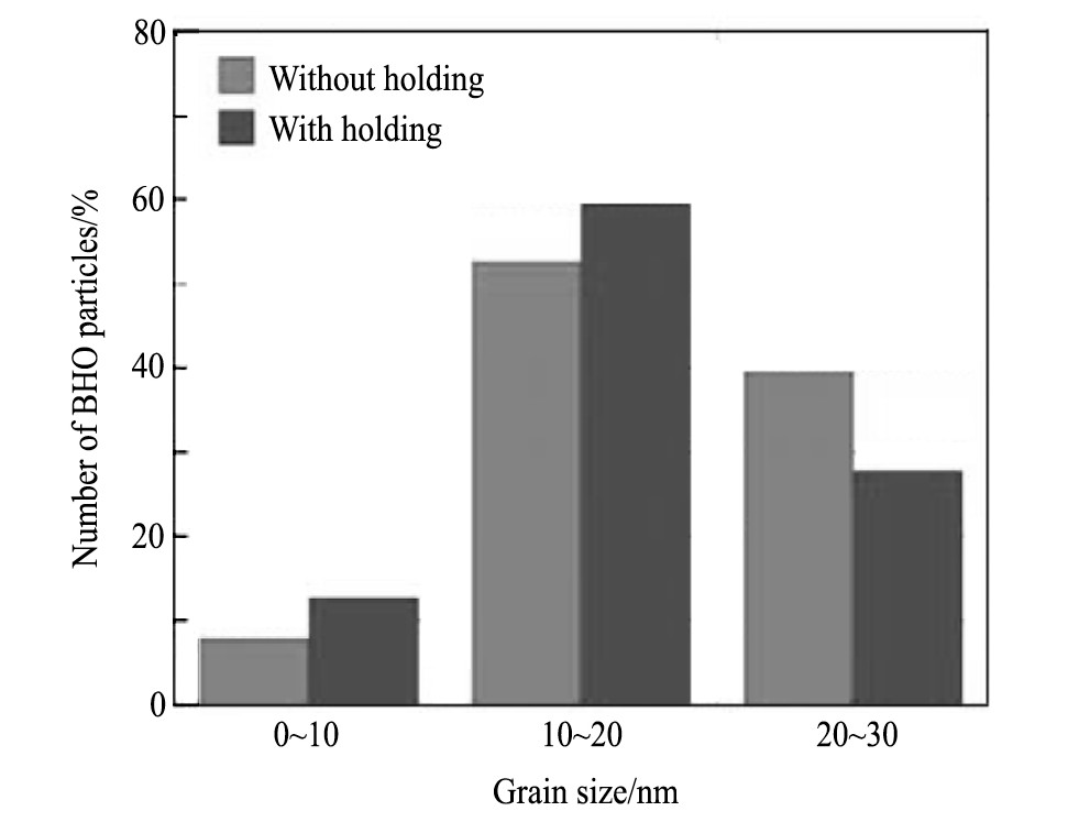 图1 4 有无附加的保温温度对BHO纳米颗粒尺寸的影响Fig.14 Particle size distribution of BHO nanoparticles in YB-CO films with and without additional holding tempera-ture[30]