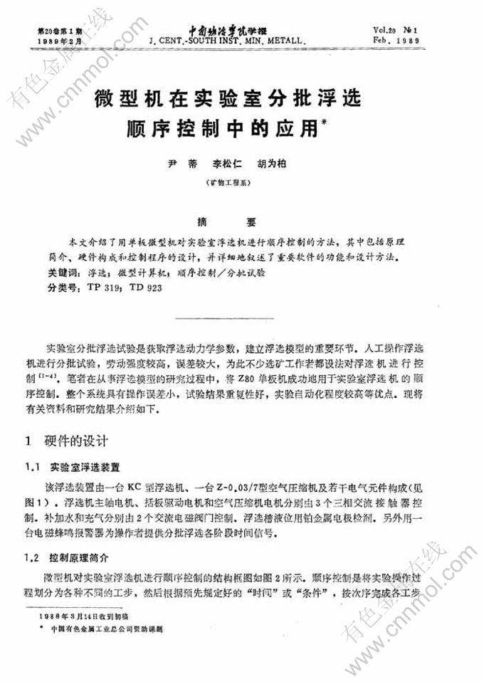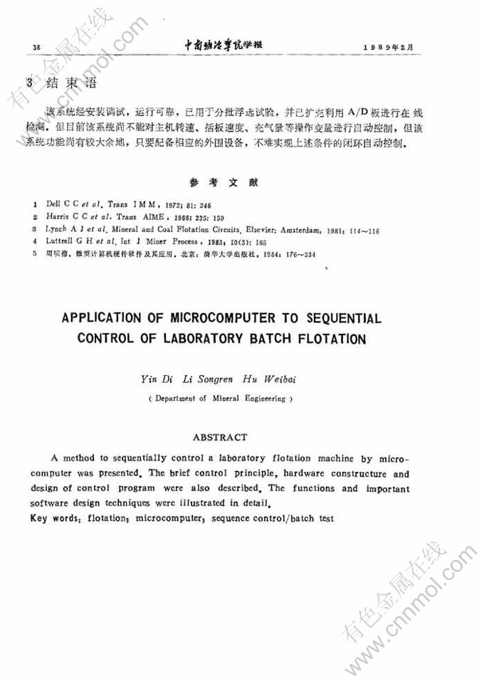 关键词:浮选; 微型计算机; 顺序控制/分批试验