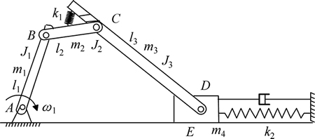 变胞机构的研究起源于1995年纸盒包装的研究[1]。DAI等[2]探讨了变胞机构的构态变换问题。PARISE等[3]引申出变胞正交机构。DAI等[4-5]实现了不同阶矩阵变换,该方法将变胞机构的构态变换转化为矩阵运算,对变胞机构的拓扑描述和构态变换进行了研究。LI等[6]利用图论对变胞机构的构态变换进行了研究,得到了一些新的变胞构型。CHEN等[7]发明了水下变胞车。DAI等[8]探讨了变胞机构的变胞方式,并阐明了数学模型在变胞构态演变中的应用。LI等[9]提出了经过改进的半加法器计算。李树军等[10]提出了一种模块化构造变胞机构的新方法,系统研究变胞机构结构组成问题,并得出平面和空间的变胞机构都能用所给出的自由度为1的模块构造而成,实现了系统的设计变胞机构。李树军等[11]提出了等效阻力梯度这一概念。张武翔等[12]根据变胞机构的多构态特性及其约束变化特征分析结果,给出约束变化的实现方式,提出变胞运动副的设计原则,并提出了一种基于约束变化特征分析的变胞机构构型综合方法。畅博彦等[13]以空间变胞并联仿生关节机构为例子,约束旋量原理被引入到变胞机构的构型综合的研究中,使得变胞机构的结构学的理论研究体系更加完善。本文作者分析变胞机构在构态变换过程中产生随机构态的原因,并对一种常见的变胞机构约束模型进行动态静力分析,总结了影响等效阻力梯度的主要因素。然后对约束变胞机构的构态变换的随机性进行分析,得出主动件转速、弹簧刚度、外力、外力矩和阻尼系数对约束变胞机构构态变换随机性的影响。