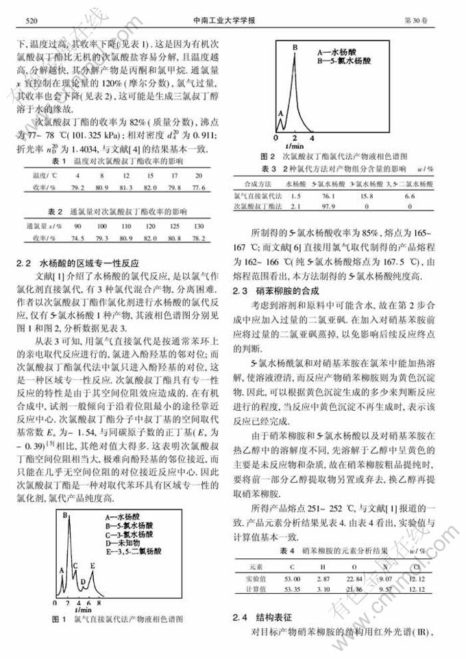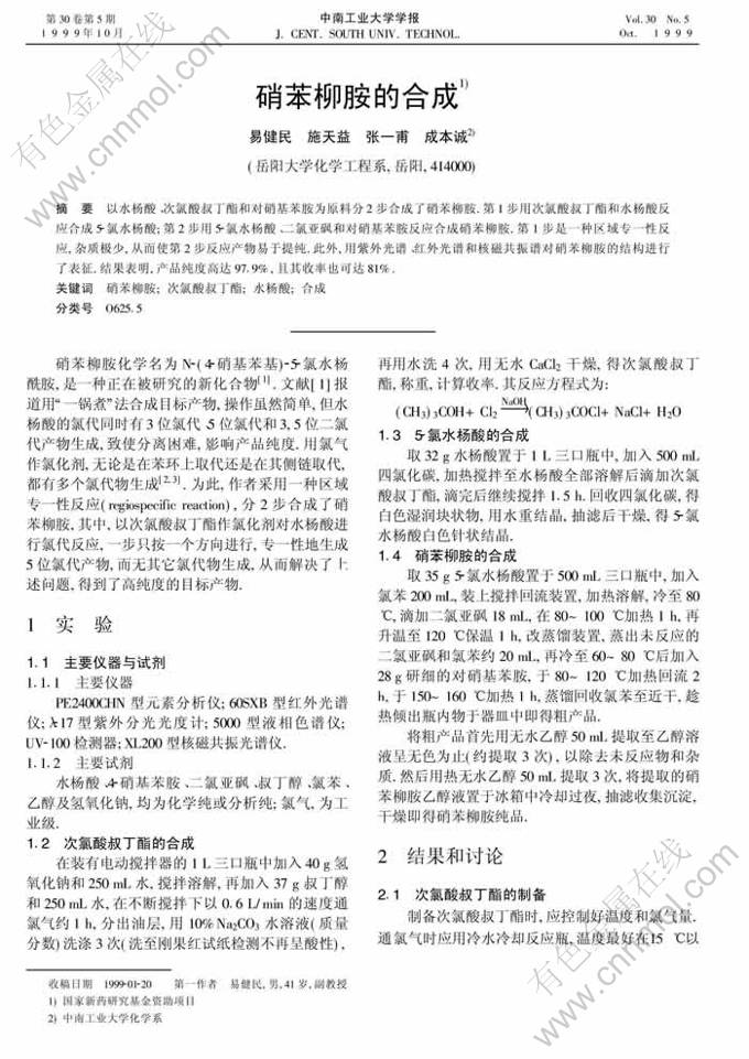 关键词:硝苯柳胺;次氯酸叔丁酯;水杨酸;合成