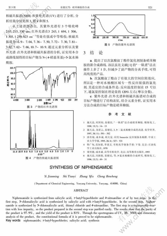 Key words:niphensamide; t-butyl-hypochlorite; salicylic acid; synthesis