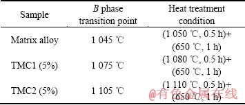 表2 钛合金以及钛基复合材料的相变点以及热处理方式