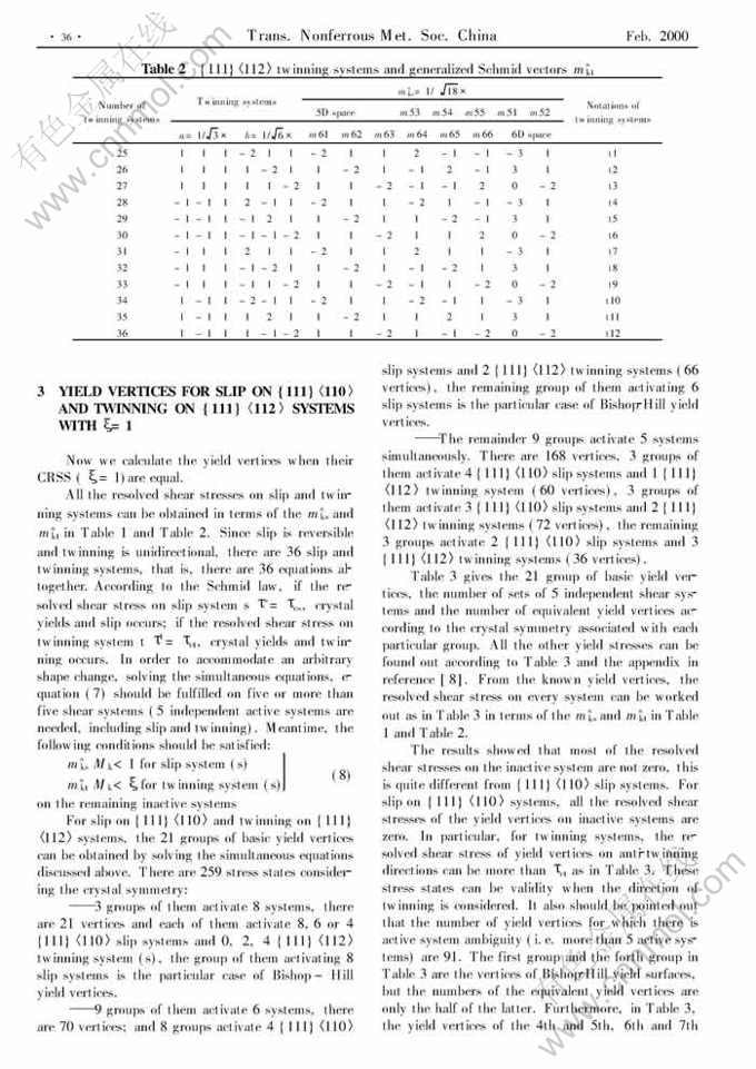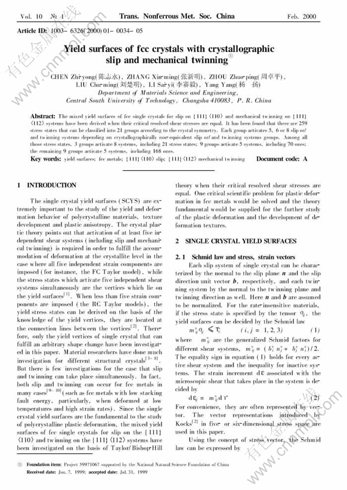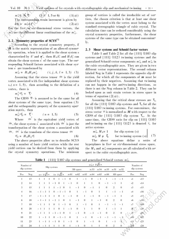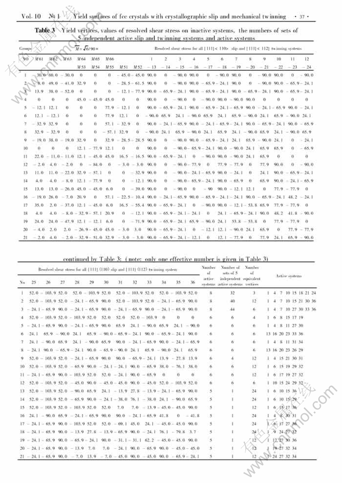 Key words:yield surfaces; fcc metals; {111}〈110〉slip; {111}〈112〉mechanical twinning