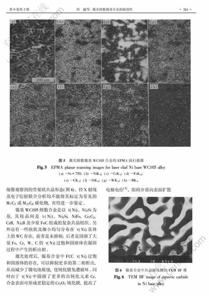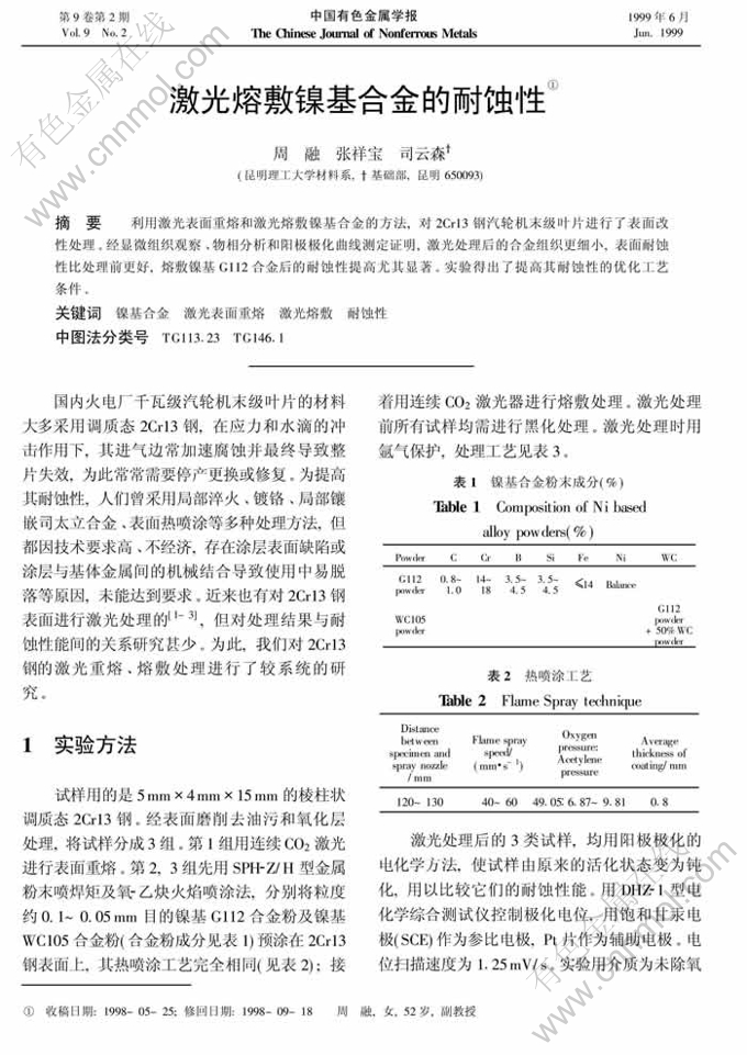 关键词:镍基合金 激光表面重熔 激光熔敷 耐蚀性