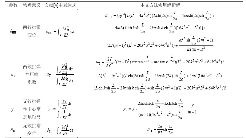 2 悬链线拱弹性常数及内力实用解析解