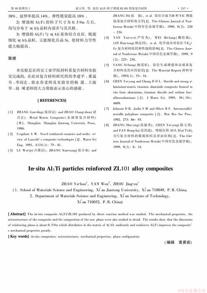原位Al3Ti粒子增强ZL101铝基复合材料