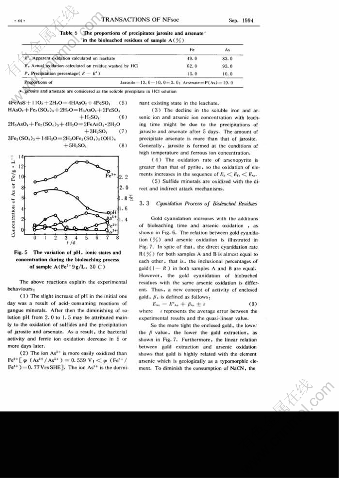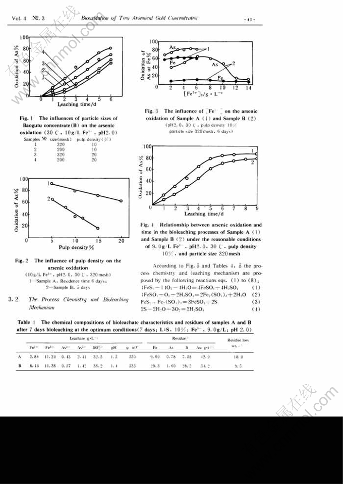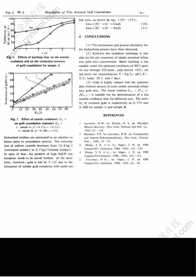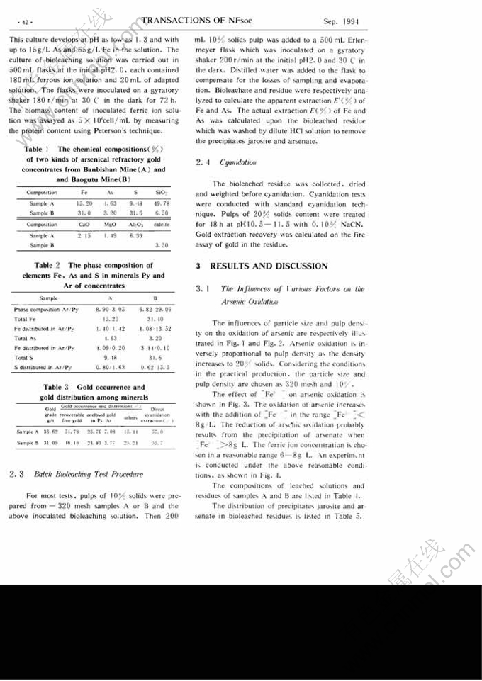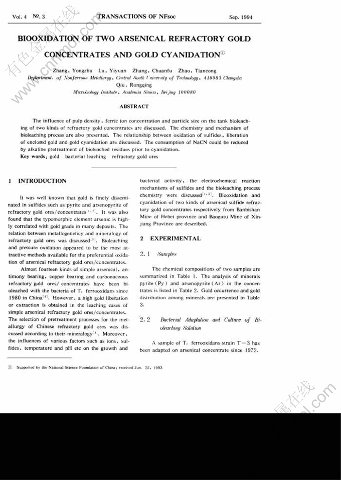 Key words:gold ;bacterial leaching ;refractory gold ores