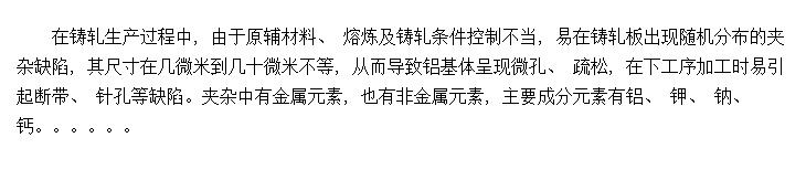 铸轧板夹渣