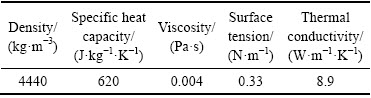 表2 铜锍的物理参数