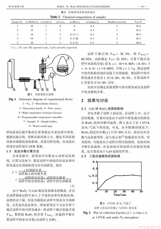 关键词:MnO2碳热还原;稀土氧化物; 催化作用