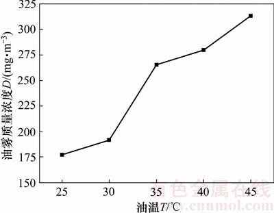 降低有利于油液的雾化,即油雾质量浓度随油温升高而增大,这与试验值一致。