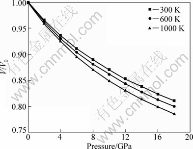 Figure 4 shows the normalized volume—pressure diagram at 300, 600 and 1000 K for CeAg. The unit cell volume decreases smoothly at different temperatures; no abrupt changes occur with increasing pressure. This change of curves can be attributed to interaction between atoms and thermal expansion. Furthermore, the normalized volume decreases faster with increasing temperature.