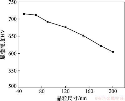 Fig. 5 Influence of nanocrystalline on hardness of electroformed Ni composites