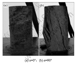 图5  抗压试验中α=0°和α=90°时的破坏模式