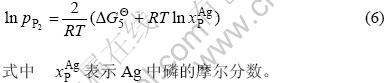 当Ag中磷的质量分数低于0.2%时,体系遵循亨利定律,结合以上两式,体系中磷的分压可表示为