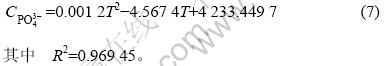 对图2中的数据进行抛物线拟合,可得到磷容量和温度的关系式如下: