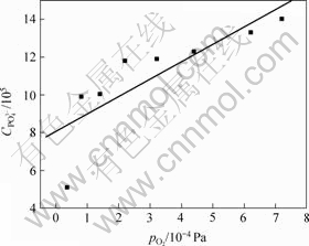 2) 在炉渣成分一定的条件下,在1 773 K,当体系气氛中氧分压由3.6×10?5 Pa增大到7.2×10?4 Pa时,CaO-SiO2-Al2O3-MgO- FetO五元渣系的磷容量随着氧分压的增大而增大。