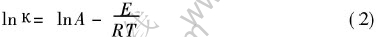 上述回归方程相关系数(R)分别为0.98和0.90。 根据式(6)、 (7)计算出的lnA、 E值也列于表1, 由表1可以看出, E与E计算值的最大相对误差为6.5%, lnA与lnA计算值的最大相对误差为6.4%, 两个验证实验所得结果也证明了这一点。