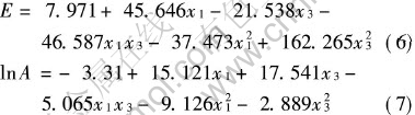 式(2)中的lnA、 E随熔盐各组元含量的变化而变化, 各组元含量一定时, lnA、 E为常数。 另因x1+x2+x3=1, 所以lnA、 E只是x1、 x2、 x3三个变量中任意两个变量的函数, 因此设: