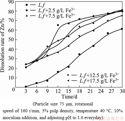 Fig. 4 Effects of different concentrations of Fe3+ on zinc dissolution by L. ferrooxidans