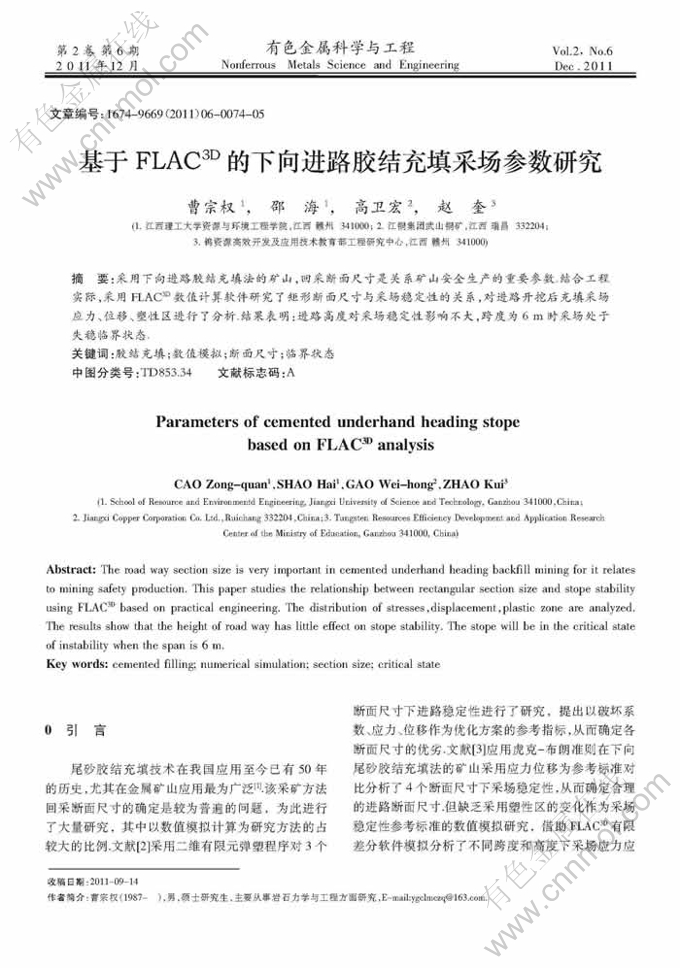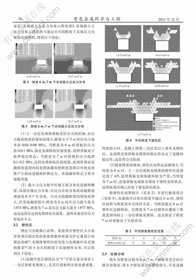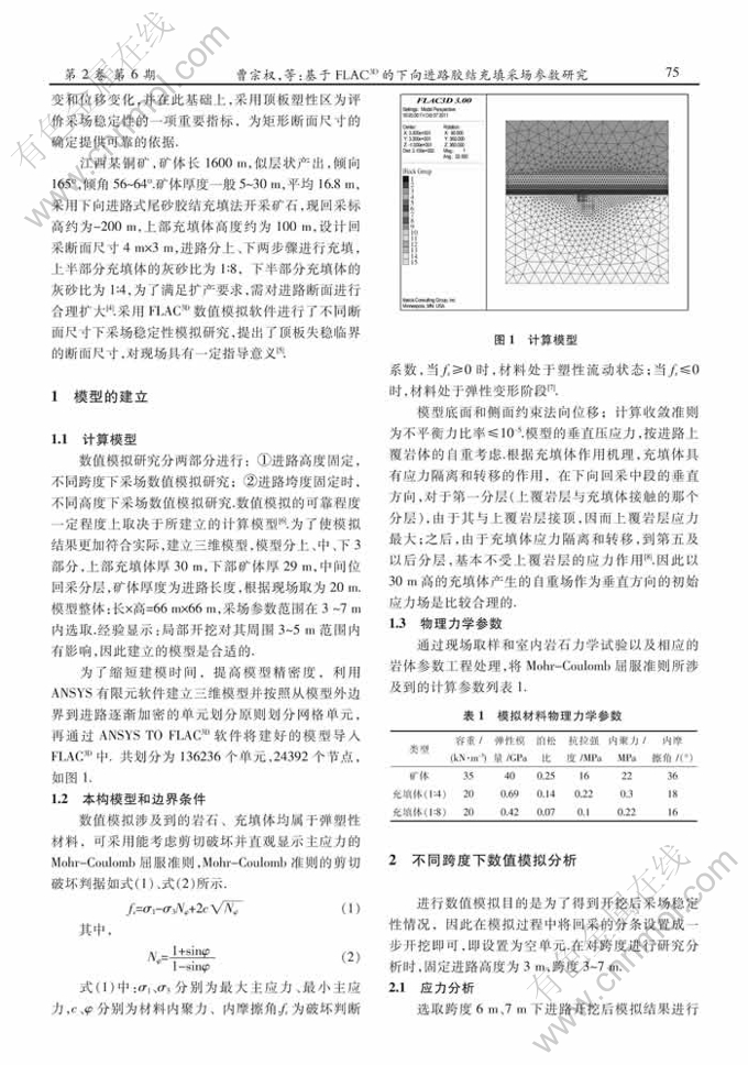 关键词:胶结充填;数值模拟;断面尺寸;临界状态